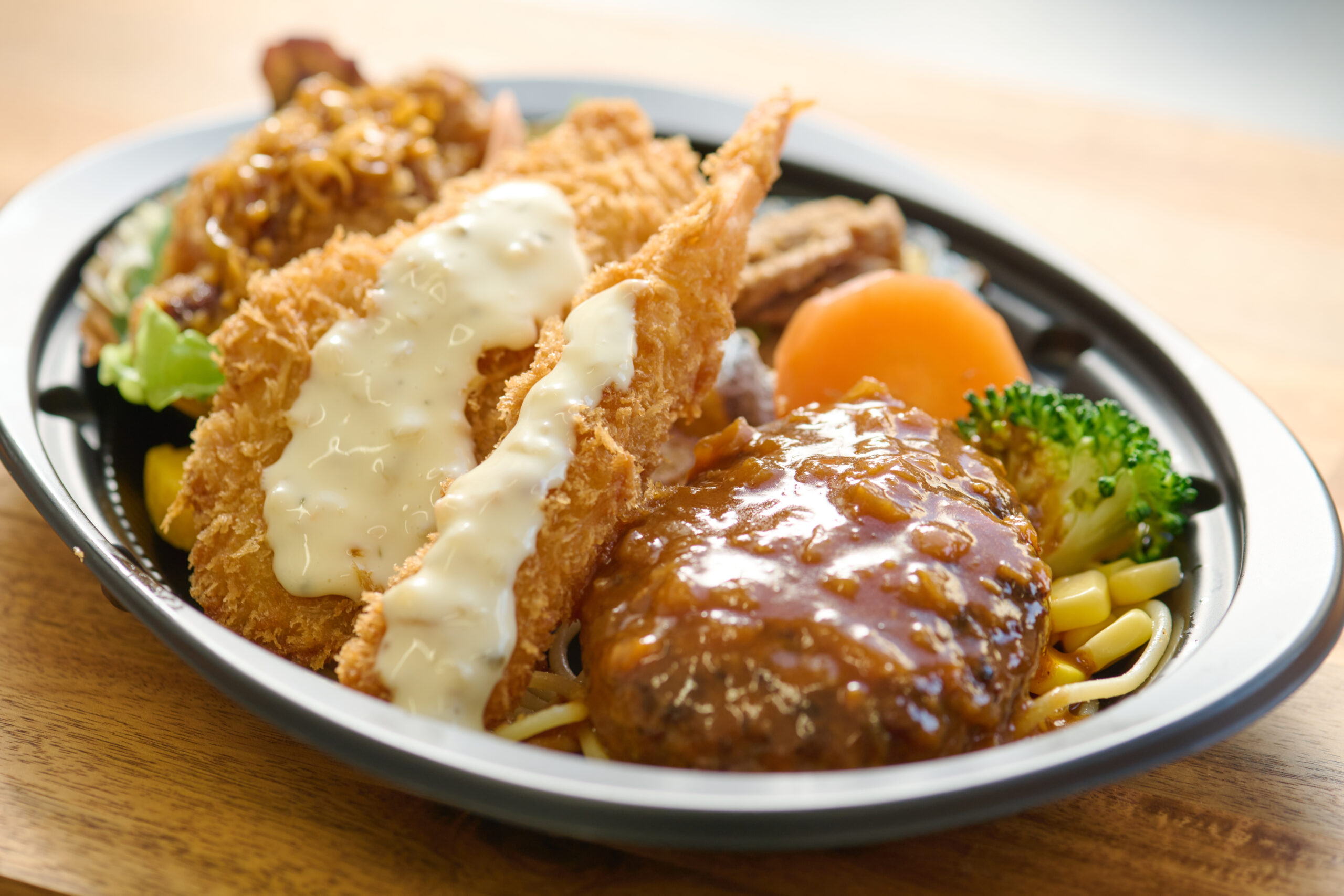 ふわふわハンバーグ、特製デミグラスソース、サクサクのフライなど、店で食べるような味わいを楽しんでいただけます。